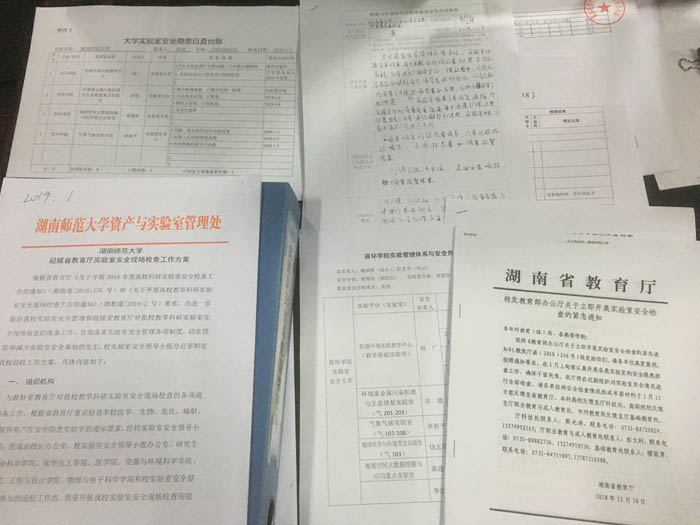 资环学院积极响应教育部、省教育厅和学校关于实验室安全检查工作的各项指示,学院安全工作领导小组于12月28日提前制定了学院安全自查工作方案,并逐步开展相关工作,各实验室于去年12月28日至今年1月6日进行了一轮全面的实验室安全自查工作。党政一把手的院领导在参加了学校组织的有关专门工作会议后,立刻进一步组织部署和实施了365官网的实验室安全相关工作。