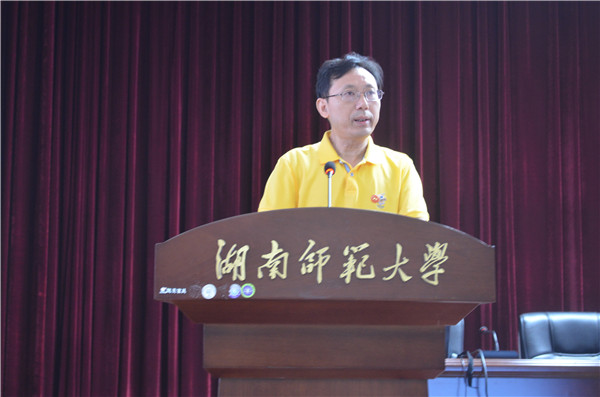 最后,院长谢炳庚讲话并向学生们详细介绍了学院的发展历程及发展前景,他表示,希望能与各位新老师生一起打造省内最优,甚至国内最优的地理专业。