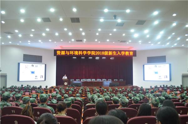 9月11日上午,资源与环境科学学院2018级新生开学典礼暨军训动员大会于国际学术报告厅举行。资环院院长谢炳庚、院党委书记彭才华、副院长周国华、副院长谭长银、副院长胡雪松、各系系主任、班导师及学工办全体出席典礼。开学典礼由党委副书记陈媛主持。
