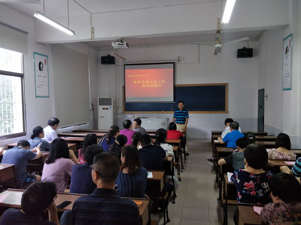 2018年7月9日下,学院召开地理科学专业认证工作推进会,学院全体教职工参加会议。会议由院长谢炳庚主持。副院长谭长银作工作报告,他阐述了专业认证的意义和作用,解读了专业认证理念和标准,分析了地理科学专业第一批参加专业认证的条件及存在的问题,对地理专业认证准备工作做了具体安排。院党委书记彭才华讲话,要求全院教职工统一思想,提高政治站位,统一行动,提升工作效率,凝心聚力,打赢专业认证攻坚战。谢炳庚在总结时强调,要高度认识地理科学专业首批参加专业认证的意义,严格对照专业认证标准推进专业认证的各项准备工作,统筹协调确保地理科学专业认证中心工作的顺利完成。