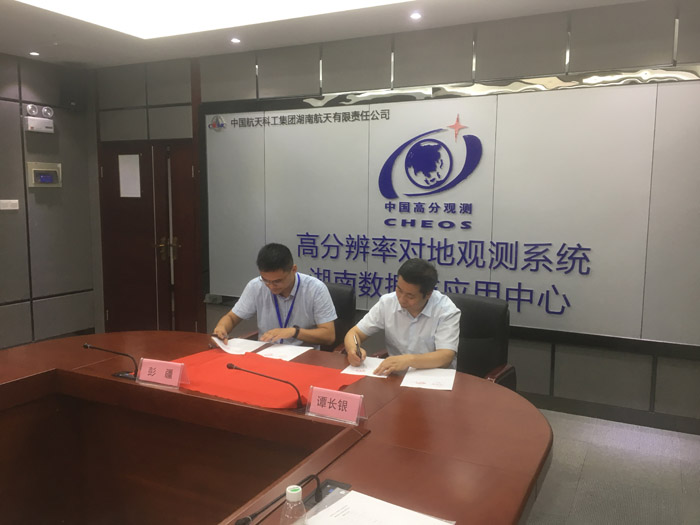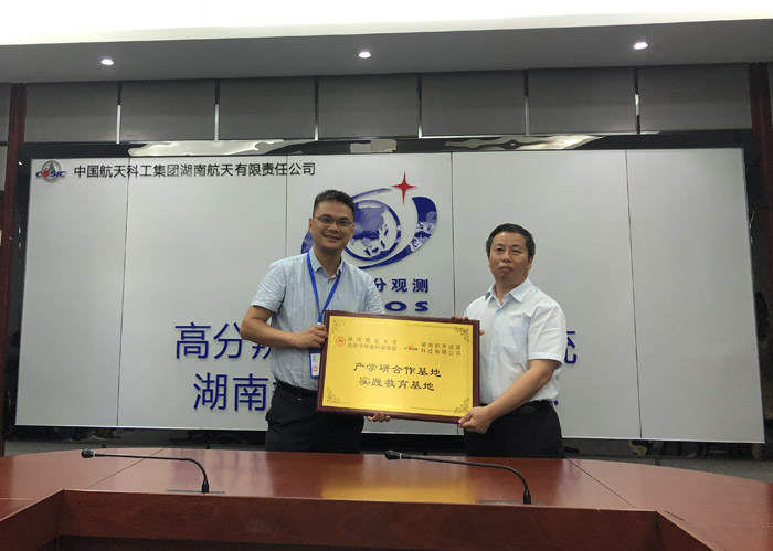 7月18日,学院由谭长银副院长带队及相关教师一行赴“高分辨率对地观测系统湖南数据与应用中心”与中国航天科工集团下属湖南省航天远望科技有限公司就校企合作、产学研实习基地建设等工作进行了亲切友好的交流座谈,并正式签约建立“产学研合作基地实践教育基地”。