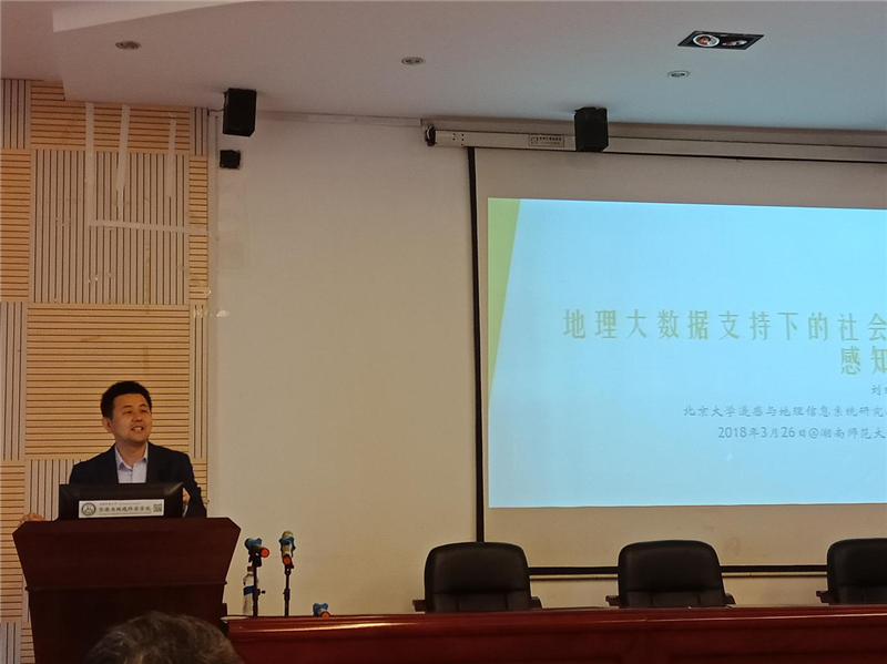 2018年3月26日下午,国家杰出青年科学基金获得者、北京大学遥感与地理信息系统研究所教授、地理信息科学国际刊物Computers,Environment and Urban Systems副主编刘瑜在资环院301报告厅为365官网师生带来主题为“基于地理大数据的社会感知及研究前沿”的讲座。讲座由教务处副处长、地理空间大数据挖掘与应用湖南省重点实验室主任秦建新教授主持。
