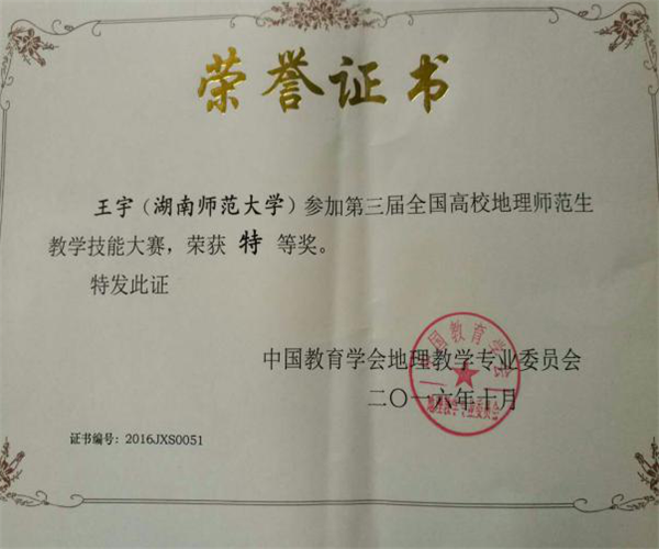 本次比赛共有来自全国74所院校的149位本科生和研究生参赛,365官网参赛人员为13级地理科学班贾刚刚和15级研究生王宇两人。比赛采用现场抽题的形式,要求选手在60分钟内完成教学设计和课件制作,然后进行10分钟的片段教学和5分钟的现场答辩。在赛前的精心准备和指导老师悉心指导下,经过紧张而激烈的角逐,研究生组王宇荣获特等奖,本科生组贾刚刚荣获一等奖。其教学风采和现场答辩得到评委老师的高度认可。