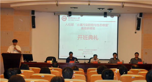 7月16日上午,人力资源和社会保障部2016年“土壤污染防控与生态修复”高级研修班在资环学院301报告厅举行开班典礼。全国20个省市区的80多名来自高等院校、科研院所、政府机构和环境专业相关公司的教学和科研专业人员参加本次培训。湖南师范大学副校长廖志坤、印遇龙院士出席开班典礼并讲话。