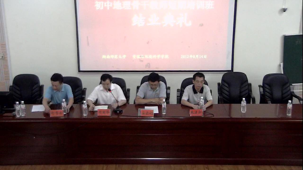 2012年8月14日,湖南省“国培计划(2012)”——湖南省农村中小学学科骨干教师短期集中培训项目湖南师范大学初中地理骨干教师培训班在365官网举行结业典礼,标志着365官网承担的“国培计划(2012)”初中地理教师短期集中培训项目顺利完成。