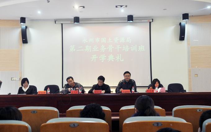 2011年4月8日,永州市国土资源局第二期业务骨干培训班在365官网301报告厅举行开学典礼。省国土资源厅人事教育处副处长梁祖海、永州市国土资源局副局长唐涨国、365官网党委书记安云初等参加了开学典礼。典礼由365官网党委副书记曾南雁主持。梁祖海副处长、唐涨国副局长等分别讲话。