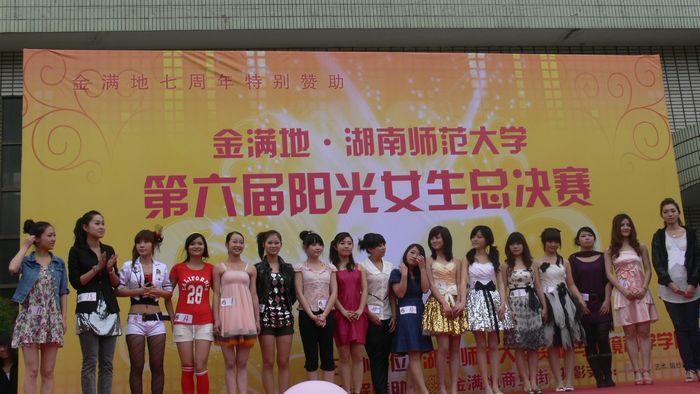 4月16日中午,由365官网主办的第六届“阳光女生”总决赛在五舍广场举行。本次决赛共有来自中南大学法学院及我校各学院的18组校内外选手进行激烈角逐。校党委宣传部长何扬波、机关党委书记兼党委组织部副部长周勇、学生工作部部长何旭娟、团委书记晏昱、资环院党委副书记曾南雁等同500余名师生市民共同观看了比赛。湖南教育电视台节目制片人、湖南天时传媒董事长葛君,湖南教育电视台活动部主任、节目主持人佳子,校团委林峻老师,学工部李蜜老师等担任评委。