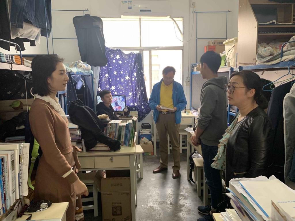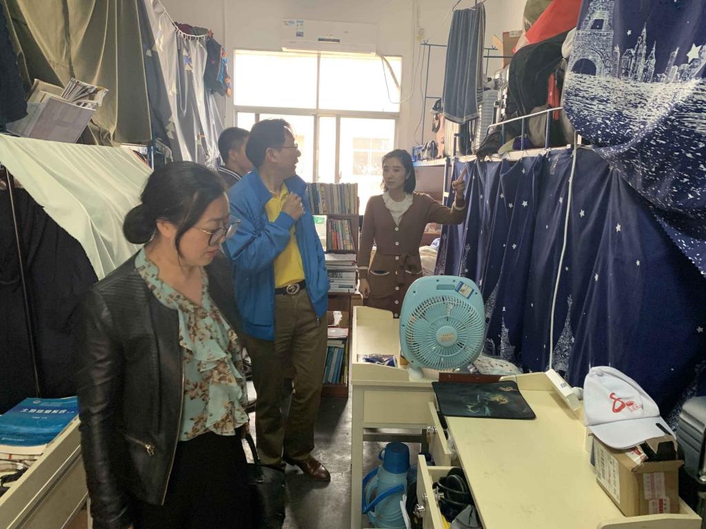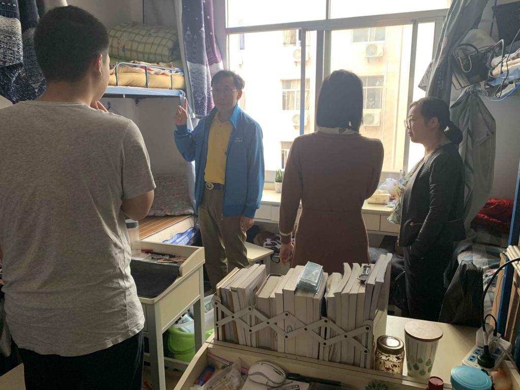 彭才华、陈媛仔细询问每位学生的学习及生活情况,叮嘱同学们要树立主人翁意识,重视宿舍卫生问题并进行整改,并注意用电安全。同时,他们对辅导员强调要加强学生寝室安全和教育、强化学生的安全意识,在保障学生安全的情况下,切实做好学生的服务工作,确保学生安全工作落细、落实。此外,他们要求各宿舍要切实整改宿舍卫生存在的问题,努力打造良好的宿舍环境。