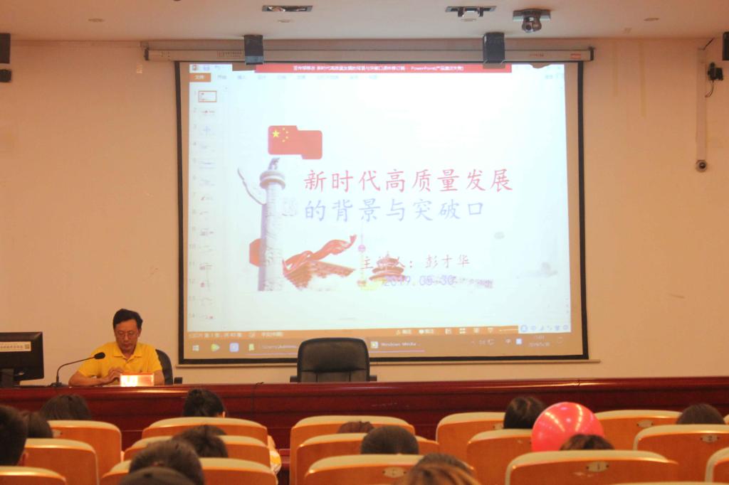 彭才华从“我国经济现状”出发,以“新时代高质量发展的背景与突破口”为主题,从三个方面进行阐释:2018年以来我国经济质量效益不断提升;我国当前面临的挑战与机遇;当前支撑经济迈向高质量发展的有利条件。