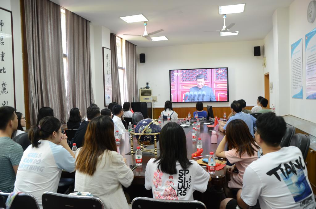 10月1日上午,根据学校“不忘初心、牢记使命”主题教育精神,为在全院师生中深入开展爱国主义教育,学院组织在201会议室和301报告厅集中观看新中国成立70周年庆祝活动。院党委书记彭才华、副院长谭长银及近200名师生观看直播活动。