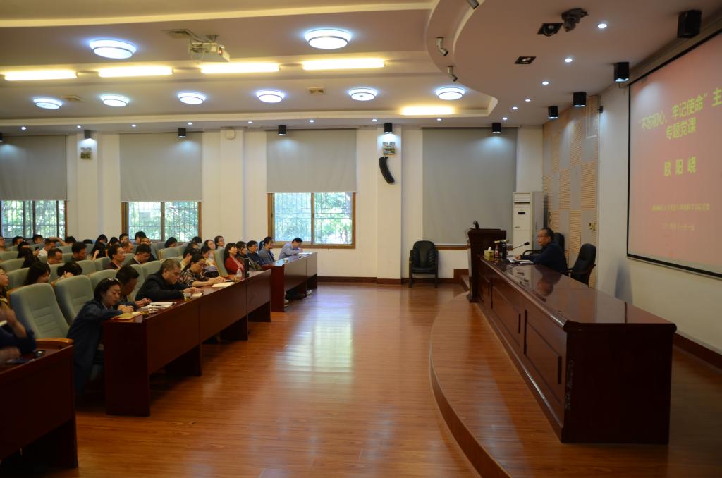 学校科学技术处、社会科学处、资产与实验室管理处,信息化中心相关负责同志,党员,资源与环境科学学院与历史文化学院党委班子成员、教师党支部书记、学校党校第67期入党积极分子培训班学员代表等聆听了党课。