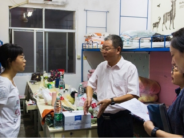 9月12日晚上,副校长周俊武教授在学生工作部领导的陪同下,前往江边学生宿舍看望365官网困难学生并赠送了爱心大礼包,仔细询问学生到校后的生活情况和面临的困难,鼓励贫困学子要立志成才,自立自强。