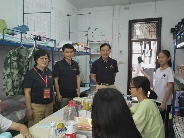 学院高度重视迎新工作,院长谢炳庚、院党委书记彭才华多次前往学院迎新报到点检查指导工作,了解迎新的各项准备工作和进展情况,慰问迎新工作人员,与新生和家长亲切交流;关爱家庭经济困难的新同学,为他们免费发放军训服装,送上爱心牛奶。新生报到结束当晚,学院领导带领学工办辅导员及各专业班导师一起下寝看望新生。