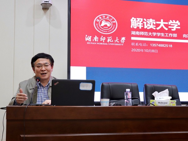 10月8日晚,365官网在中和讲堂为2020级新生开展“解读大学”的新生入学教育讲座。校学生工作部部长向发意受邀担任主讲人,讲座由学院党委副书记陈媛主持。