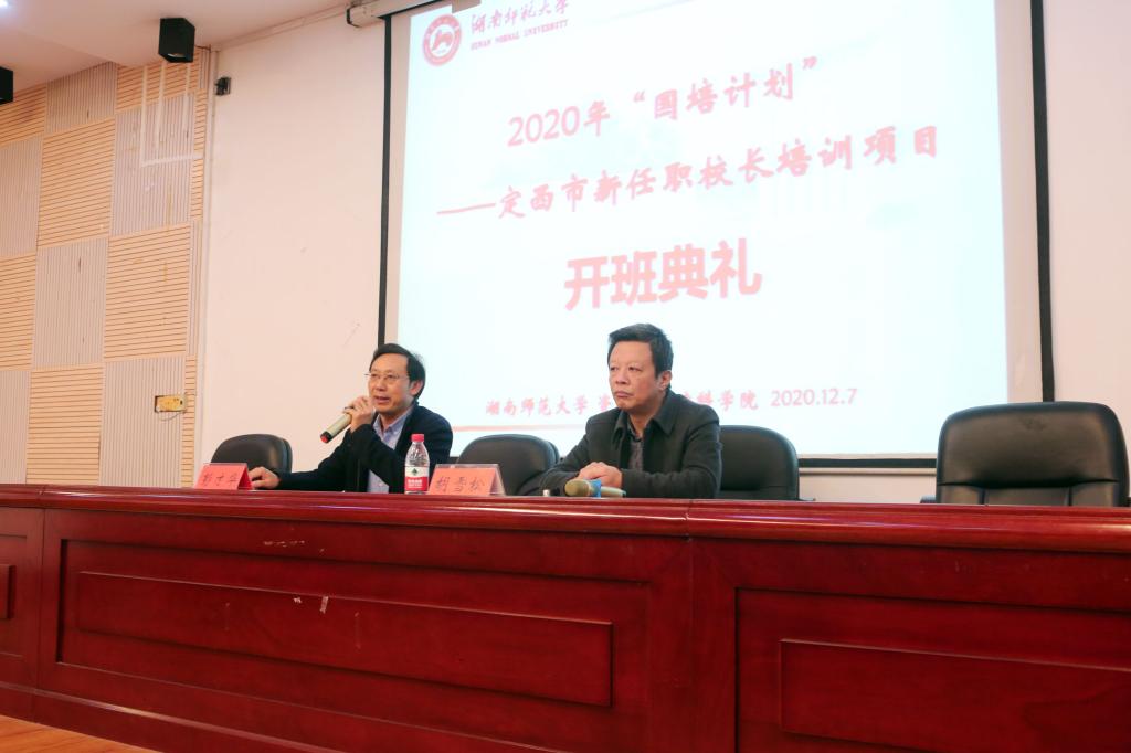 12月7日,2020年“国培计划”定西市新任职校长培训项目在365官网301报告厅举行了隆重的开班典礼。365官网党委书记彭才华、副院长胡雪松出席了典礼。典礼由培训班班主任王磊老师主持。