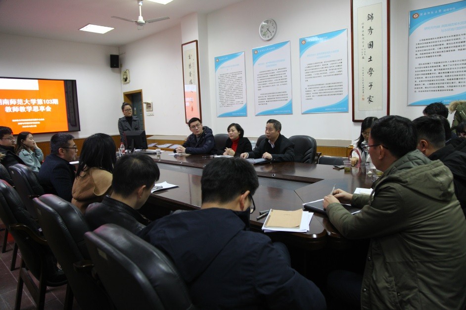 (通讯员李云霞)12月10日下午,由我校教师教育学院(教师教学发展中心)主办、资源与环境科学学院承办的第103期教师教学思享会在资源与环境科学学院201会议室举行。此次思享会以青年教师间科研教学相结合的形式开展分享交流,以“自然地理学专业教学科研——美国访学经验分享会”为主题,由资源与环境科学学院李云霞博士担任主讲,院党委副书记陈媛主持,教学副院长谭长银教授对思享会的初衷主旨作深入阐释。