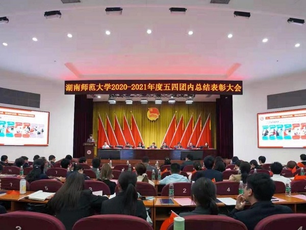 (供稿人 苏欣)4月29日,在“五四”青年节即将到来之际,我校于国际学术报告厅召开湖南师范大学2021年“五四”团内总结表彰大会。