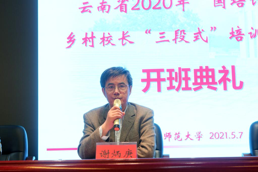 谢炳庚院长代表学院致欢迎词,对前来365官网学习交流的云南省乡村校长们表示热烈欢迎,并就365官网的办学历史、办学规模、办学成就、师资力量和培训工作做了简要的介绍。
