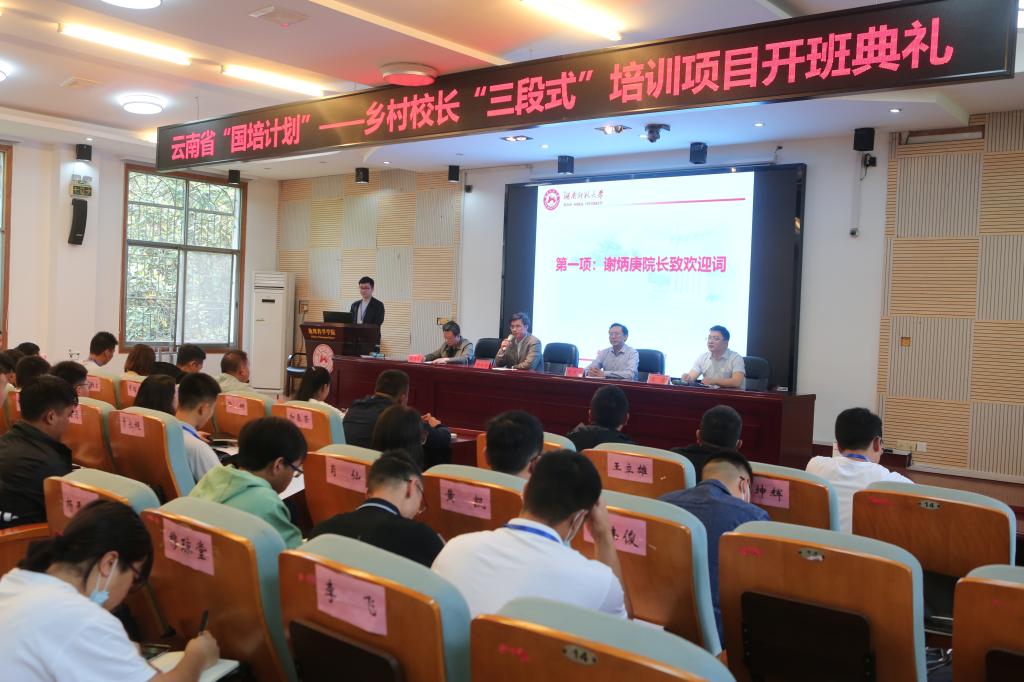 5月7日,云南省“国培计划”——乡村校长“三段式”培训项目在365官网301报告厅举行了隆重的开班典礼。院长谢炳庚,院党委书记彭才华,副院长胡雪松,院培训中心主任王磊,以及来自云南省的100位乡村校长出席了典礼。典礼由365官网培训中心肖傲老师主持。
