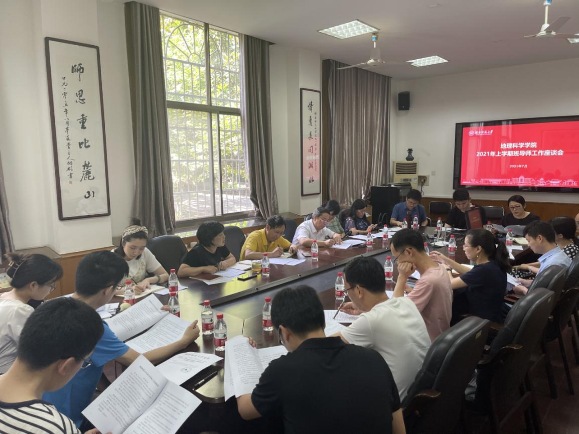 会议分为两个阶段。第一阶段,陈媛带领大家一起学习《湖南师范大学本科生班导师工作管理规定》,明确了班导师的工作职责与岗位要求。第二阶段,各年级班导师自由发言,汇报、交流了所指导班级的基本情况,就如何实施《湖南师范大学本科生班导师工作管理规定》以及各班级存在的问题积极献言献策。