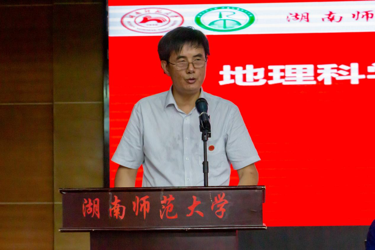 院长谢炳庚代表学院致辞,从学院历史传承、学科专业设置、师资配备力量、科研学术水平、人才培养质量、对外合作交流等层面向新生详细介绍了beat365中国唯一官方网站的情况,通过“经天纬地”和“天地人和”两块石碑,向新生诠释了地理学的价值与意义以及学院的理想与追求。他还嘱咐同学们立大志,引领人生航向;明大德,锤炼青春底色;成大才,练就过硬本领;担大任,肩负时代使命。