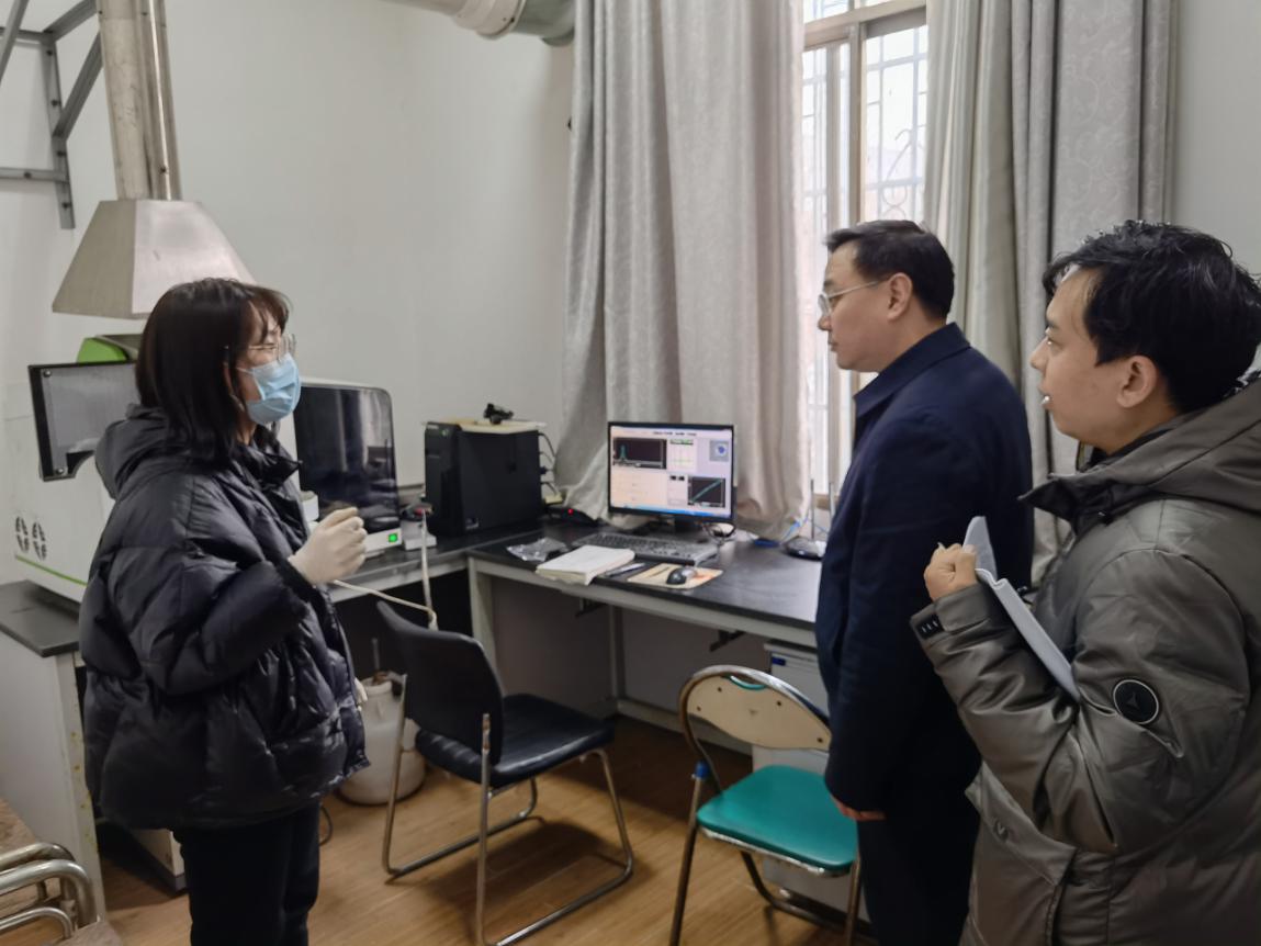 1月14日下午,beat365中国唯一官方网站开展实验室安全检查工作。学院党委书记刘忠耿带队,副院长周国华、院党委副书记陈媛、副处级专职组织员袁颜锋以及实验中心全体老师参加了安全检查工作。