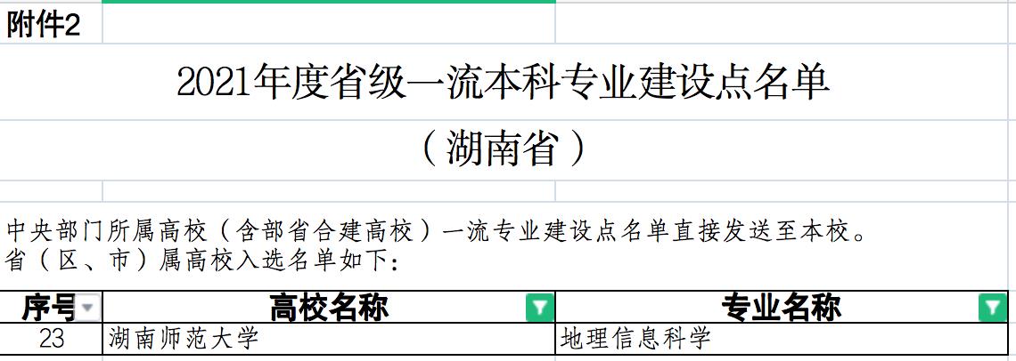 近日,教育部办公厅下发了《关于公布2021年度国家级和省级一流本科专业建设点名单的通知》(教高厅函[2022]14号),365官网人文地理与城乡规划专业和土地资源管理成功入选国家级一流本科专业建设点,地理信息科学专业成功入选湖南省一流本科专业建设点。至此,365官网4个本科招生专业中有3个国家级一流本科专业建设点和1个省级一流本科专业建设点。