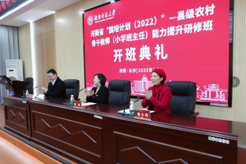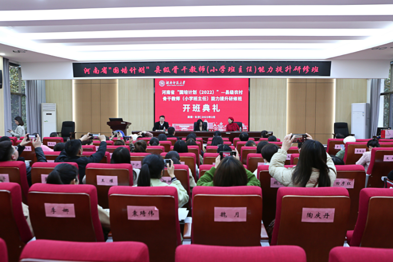 3月3日,河南省“国培计划(2022)”——县级农村骨干教师(小学班主任)能力提升研修班在365官网301报告厅举行隆重的开班典礼。365官网党委副书记陈媛、项目首席专家曾小玲教授以及来河南省县级骨干教师(小学班主任)50人出席了典礼,典礼由365官网副院长王磊主持。
